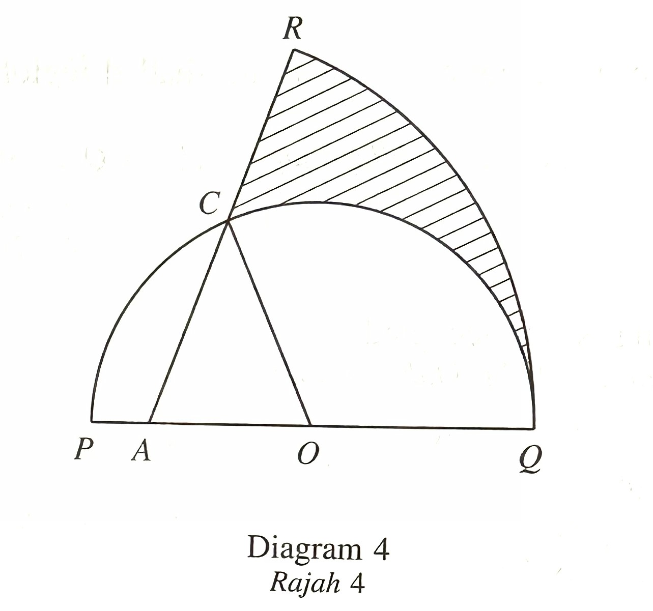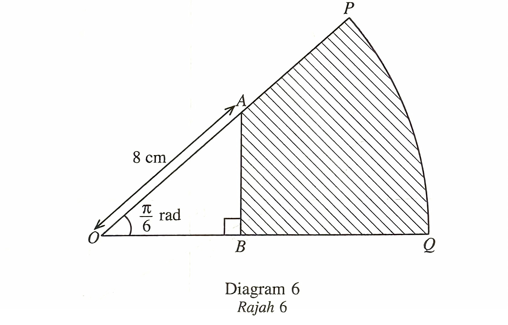Rajah 6 menunjukkan sektor POQ bagi sebuah bulatan berpusat O. Titik A terletak pada OP, titik B terletak pada OQ dan AB berserenjang dengan OQ.
