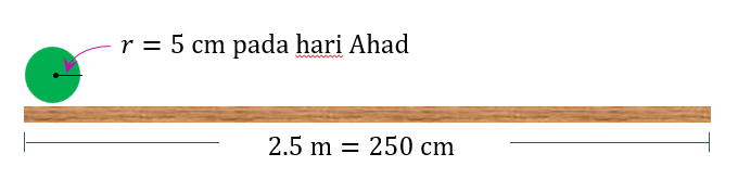 (a) Pada hari Ahad, Mus membeli sejumlah bola berbentuk sfera dengan jejari 5 cm . Beberapa biji bola itu akan disusun sebaris di atas sebuah rak yang panjangnya 2.5 m . Pada hari Isnin, isi padu setiap bola itu menyusut secara seragam sebanyak 20π cm3.